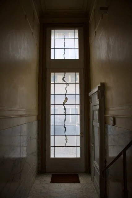 Sunset of lake Veerse, captured in glass